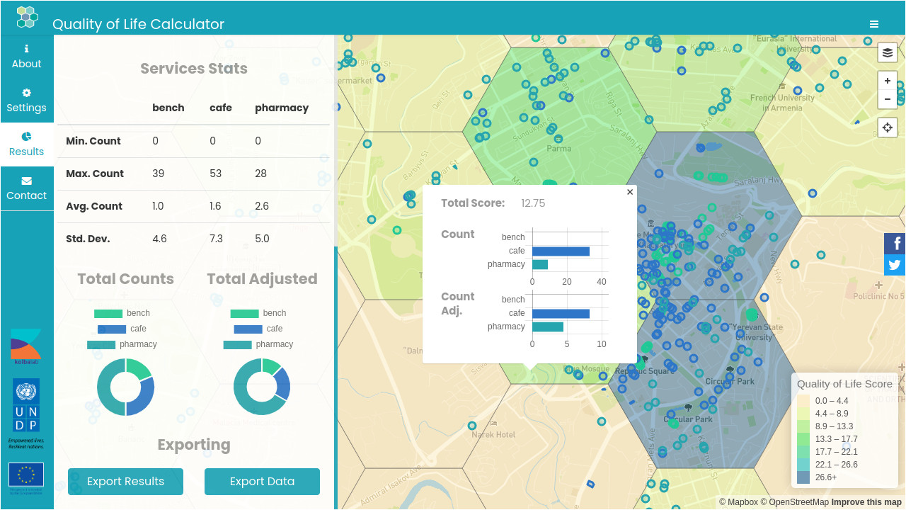 An app that leverages OpenStreetMap data and your own defition of quality of life to score a city of your choice. The tool can also be used with user data (for example governments) to do before and after analysis of master plans and other urban planning activities and developments.