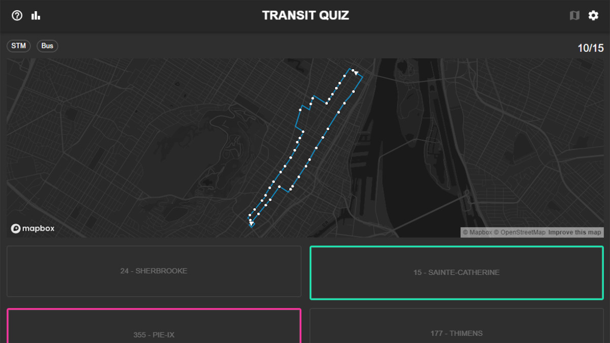 As a continuation of my exo quiz project, I wanted to make a bigger and better quiz that included transit networks from all over the world. Inspired by the ubiquity of the GTFS format and the abundance of data available, I thought I would tackle the mega job of compiling global transit data and writing a backend to power a global quiz app… that is until the project transformed into a collaborative one (what a relief!). Instead of compiling global GTFS data, all the transit data used by the app is provided by Transit’s api. Thank you Transit!